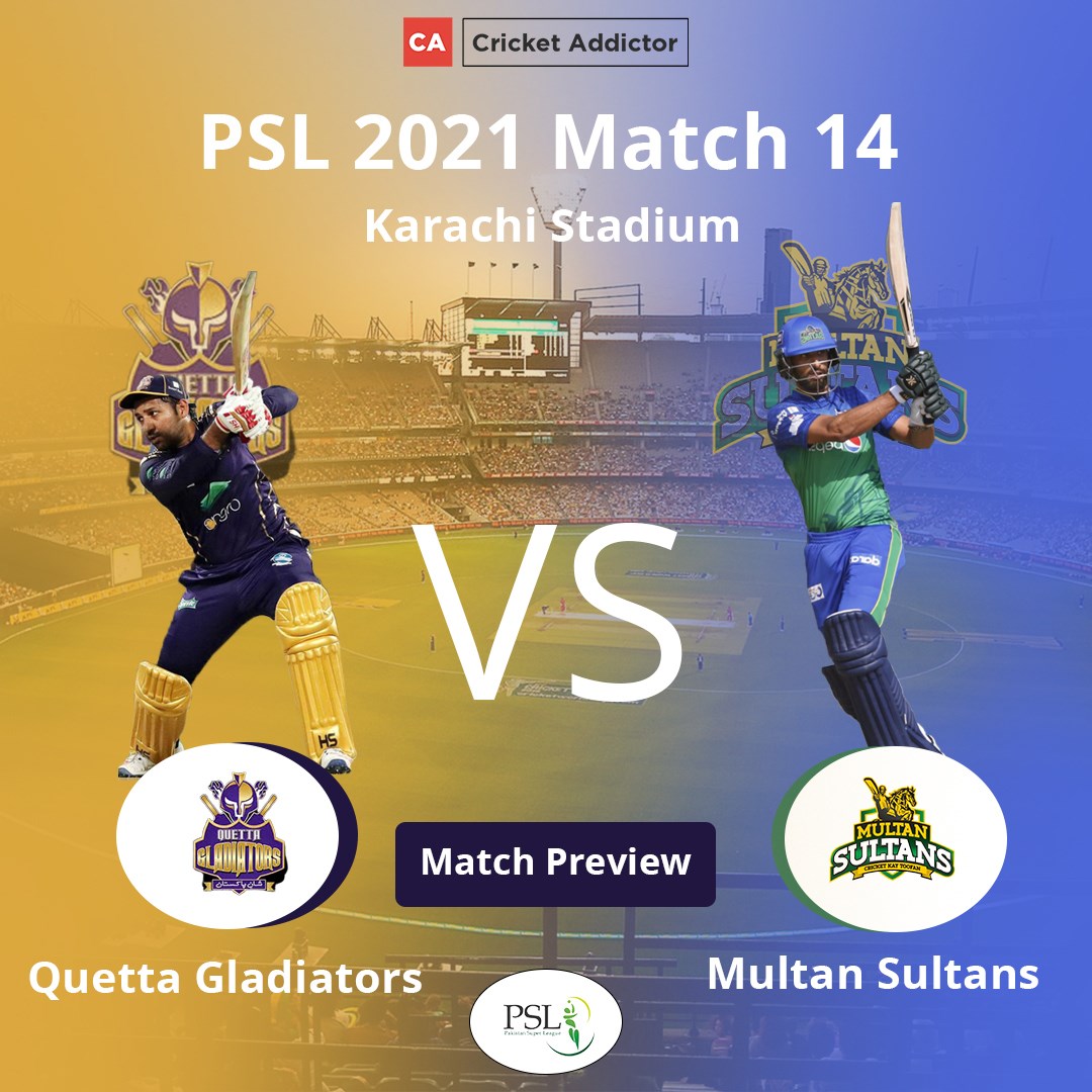 Quetta Gladiators will compete against Multan Sultans at National Stadium (Karachi) during the 14th match of the PSL 2021 on Wednesday (3rd March) evening.