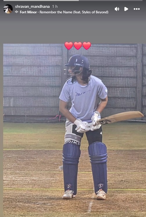 Instead of taking a break or staying away from the public eye, Smriti Mandhana walked straight back into training. Mandhana was seen wearing her training jersey, pads, and gloves, and calmly facing throwdowns at what looked like a private practice facility.